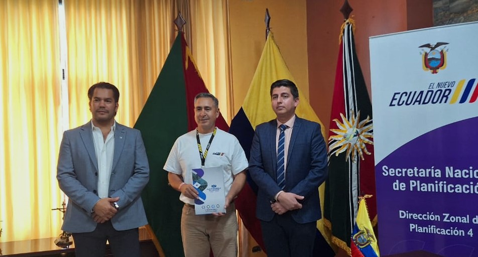 Zona 4 (17/05/2024).-  La Dirección Zonal de Planificación 4 socializó el Plan de Desarrollo para el Nuevo Ecuador 2024-2025 a las autoridades de la Gobernación provincial de Santo Domingo de los Tsáchilas y del Gobierno Autónomo Descentralizado (GAD) de Rocafuerte, provincia de Manabí. Como parte de la actividad, los representantes locales recibieron un ejemplar del máximo instrumento de planificación.