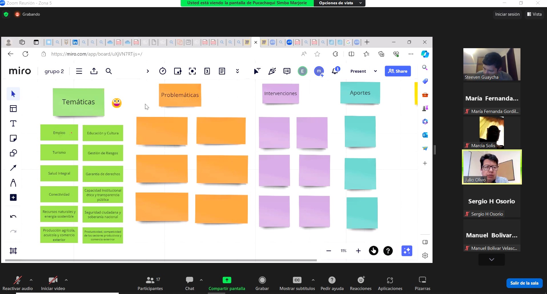 Posteriormente, los participantes priorizaron tres temáticas a analizar: empleo; seguridad ciudadana y soberanía nacional; y producción agrícola, acuícola y comercio. Con respecto al empleo, las propuestas se enfocaron en la mejora de las condiciones laborales en el sector agrícola de la Zona 5, con supervisión laboral; la generación de fuentes de empleo para jóvenes y adultos; y la creación de incentivos y subsidios focalizados para los pequeños agricultores.
