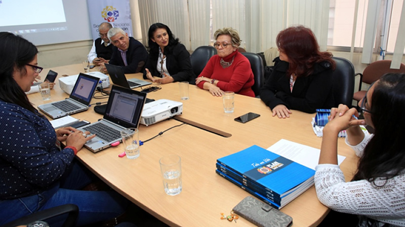 Delegados salvadoreños durante la reunión con la Subsecretaria de Planificación Territorial, Gabriela Vacacela.