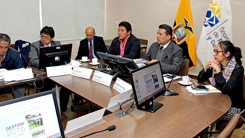 La reunión estuvo presidida por el Secretario Nacional de Planificación y Desarrollo, Etzon Romo, y el Secretario Ejecutivo del Ecorae, Jorge Eduardo Calvas.