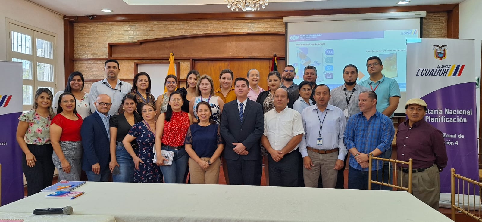 Quito (22/03/2024).- Con el fin de socializar las directrices estratégicas del Plan de Desarrollo para el Nuevo Ecuador 2024-2025 y su alineación con los planes sectoriales e institucionales del Gobierno, la Dirección Zonal de Planificación 4 realizó un taller dirigido a 28 técnicos del Ejecutivo desconcentrado de las provincias de Manabí y Santo Domingo de los Tsáchilas.