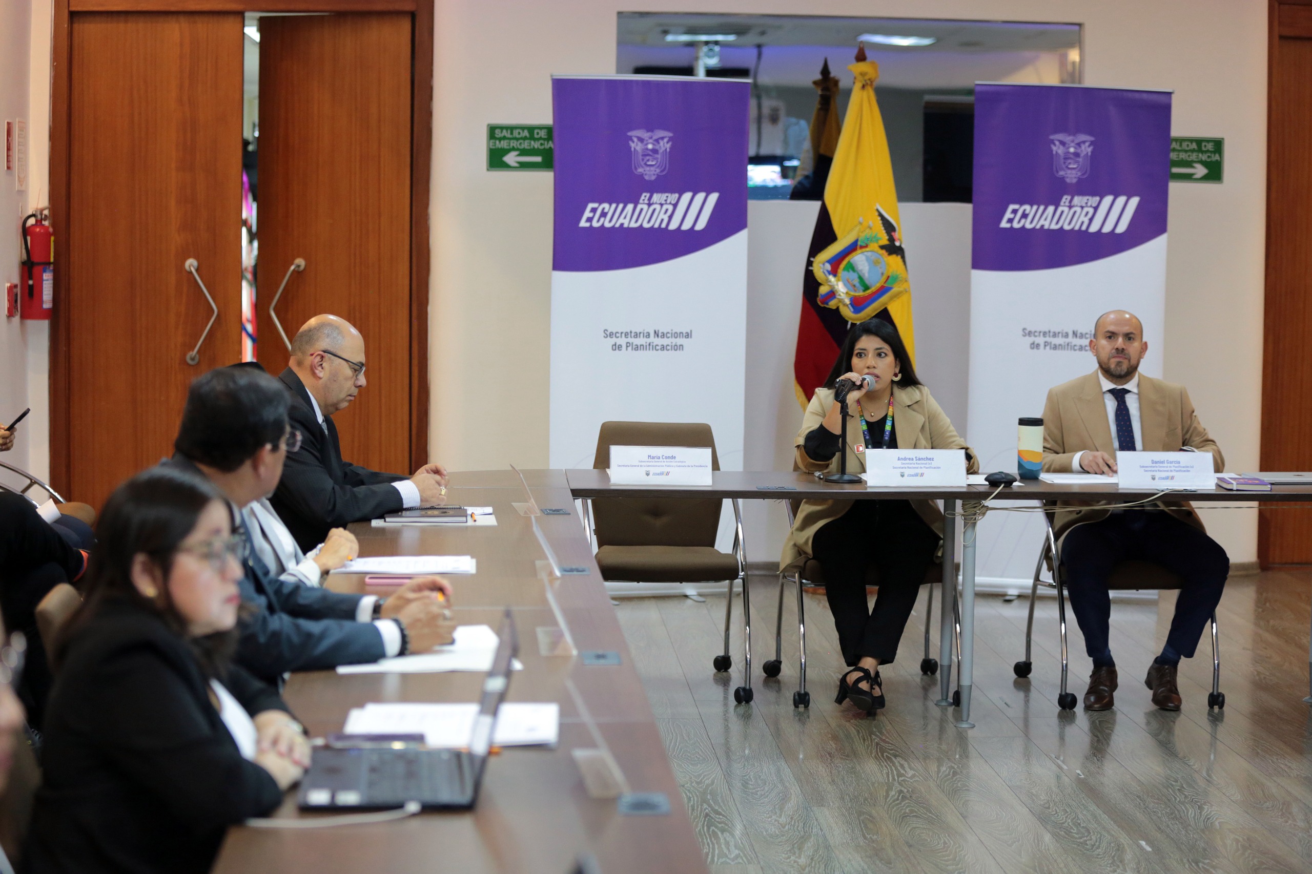 Quito (21/05/2025).- Este 21 de mayo de 2025, el Consejo Nacional de Planificación (CNP) mantuvo su primera sesión extraordinaria Nro. CNP-001-2025-E, el cual fue presidido por la Secretaria Nacional de Planificación (e), Andrea Sánchez, en calidad de presidenta, de acuerdo a la delegación realizada por el presidente de la República, Daniel Noboa Azin.