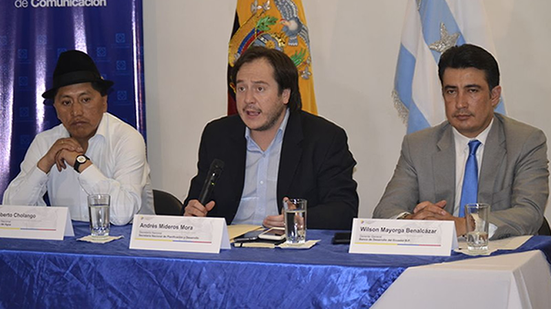 Durante la rueda de prensa, el secretario nacional de Planificación y Desarrollo, Andrés Mideros resaltó la importancia de un trabajo conjunto con alcaldes y presidentes de juntas parroquiales para garantizar el compromiso de la calidad del agua y la sostenibilidad y mantenimiento de los sistemas. “Queremos avanzar, en estos 4 años, hacia un país libre de desnutrición y pobreza con agua y vivienda para todos”, señaló.