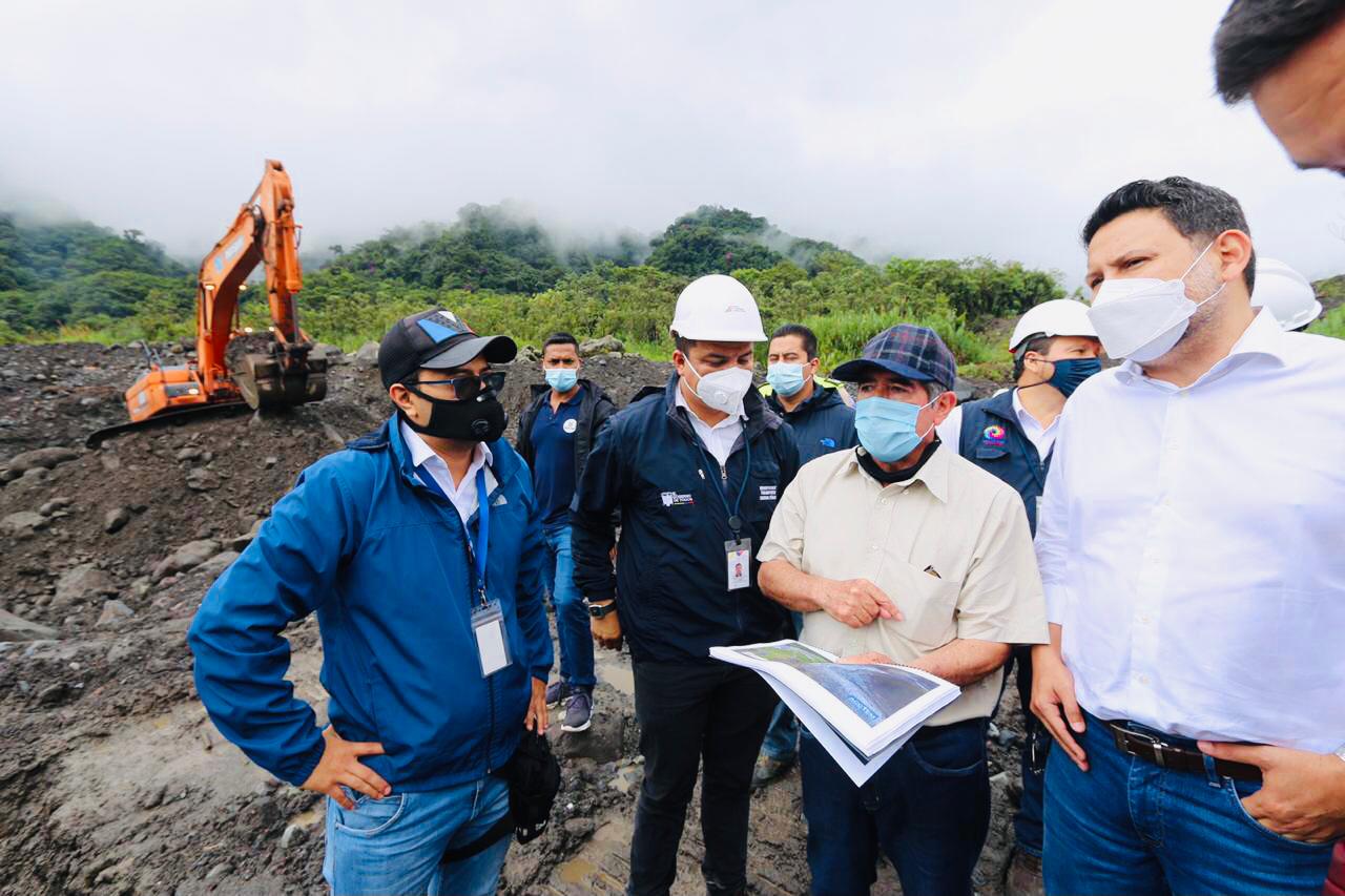 Las autoridades nacionales y provinciales también recorrieron el sector de El Reventador -en donde se formó un socavón por la erosión del río Coca- a fin de verificar la construcción de la variante definitiva en el tramo Baeza-Lago Agrio. La obra avanza conforme a lo programado.