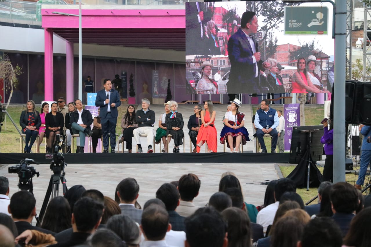 (05/10/2023).- Autoridades gubernamentales nacionales y del Ejecutivo desconcentrado de la Zona 6 participaron en la inauguración del Centro Violeta, en Cuenca, evento que estuvo encabezado por el presidente de la República, Guillermo Lasso.