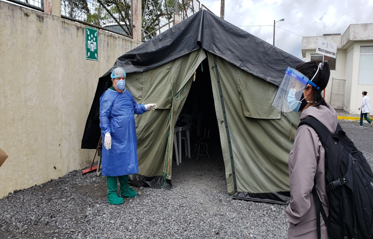 En el Hospital de Macas se instalaron carpas para atender a los pacientes con COVID-19.