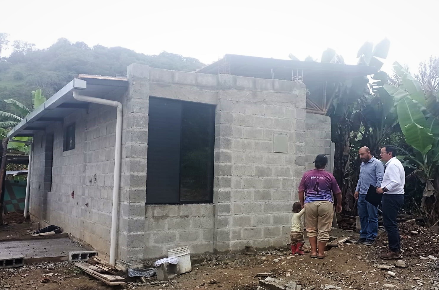 En Centinela del Cóndor se visitó el proyecto “Ingeniería, procura y construcción de viviendas de interés social del segmento 1, con subsidio total del Estado, Grupo 60”, que se encuentra en ejecución y presenta un 90 % de avance. Consiste en la construcción de 10 viviendas, con un beneficio para 10 familias del cantón. Al momento se han construido las paredes, cerámica de pisos, cubierta e instalaciones de agua; está pendiente la instalación de puertas internas, estructuras eléctricas, biodigestor, sanitarios, lavandería y pintura.