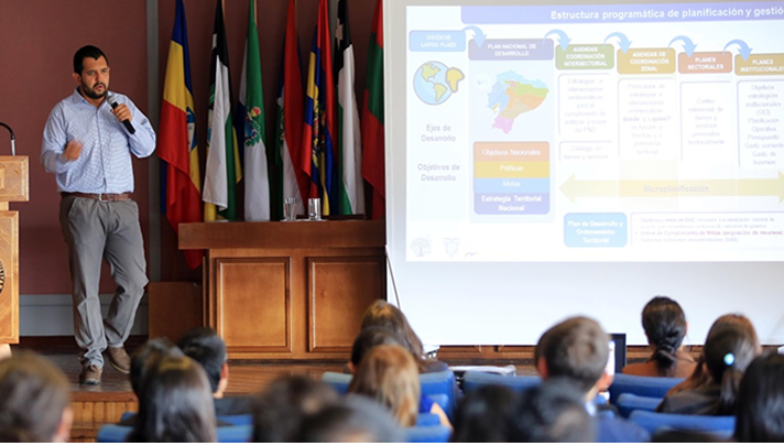 En este contexto, el director de Ordenamiento y Articulación Territorial de la Senplades, Cristhian Salcedo, explicó los contenidos del Plan Nacional de Desarrollo 2017-2021 y su vinculación con los Objetivos de Desarrollo Sostenible de la Agenda 2030. En su intervención, además, detalló cómo funciona el Sistema Nacional Descentralizado de Planificación Participativa y los instrumentos de planificación.