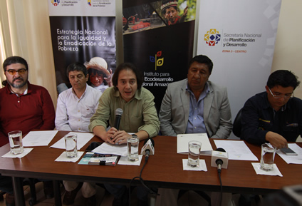 Andrés Mideros, titular de la Secretaría Técnica para la Erradicación de la Pobreza (Setep), presentó en un una rueda de prensa en el Puyo, capital de la provincia de Pastaza, la Estrategia Nacional para la Igualdad y la Erradicación de la Pobreza (Eniep) en la Amazonía ecuatoriana. El encuentro se lo realizó el jueves 4 de junio del 2015.