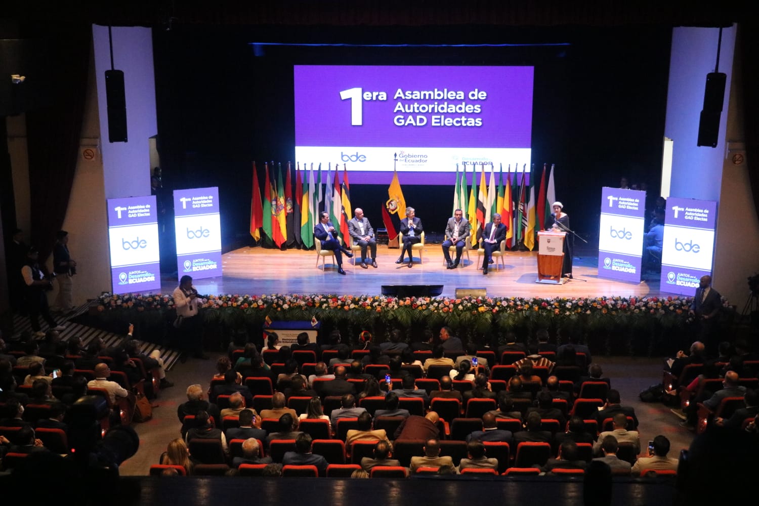 Quito, (15/03/2023).- Este 15 de marzo de 2023, en la Universidad  del Azuay de Cuenca, el secretario nacional de Planificación, Jairon Merchán, participó en la “1ª. Asamblea de Prefectos y Alcaldes electos del país”, que fue liderada por el presidente de la República, Guillermo Lasso, con el objetivo de fortalecer e impulsar el trabajo conjunto entre el Gobierno Nacional y las autoridades locales, en beneficio de la ciudadanía. Al encuentro -que fue organizado por la Presidencia de la República y el Banco del Desarrollo (BDE)- asistieron 170 autoridades electas de las prefecturas y alcaldías del país.