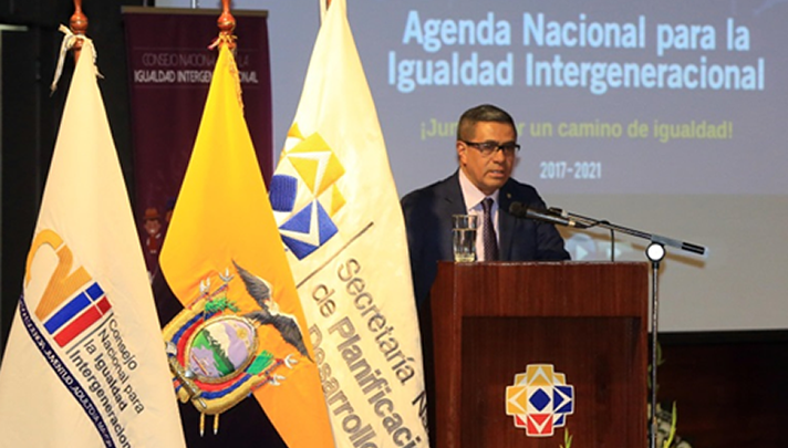 Quito (28-08-2018).- El secretario nacional de Planificación y Desarrollo, José Agusto Briones, participó hoy en el evento de presentación de la Agenda Nacional para la Igualdad Intergeneracional (ANII), que se realizó en el auditorio de Senplades. El evento fue organizado por el Consejo Nacional para la Igualdad Intergeneracional (CNII) y el Ministerio de Inclusión Económica y Social (MIES).
