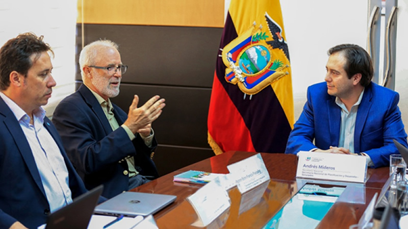 Para intercambiar propuestas sobre las estrategias e instrumentos de implementación del proyecto, este 3 de agosto, el secretario nacional de Planificación y Desarrollo, Andrés Mideros, se reunió con la Organización de las Naciones Unidas para la Alimentación y la Agricultura (FAO).