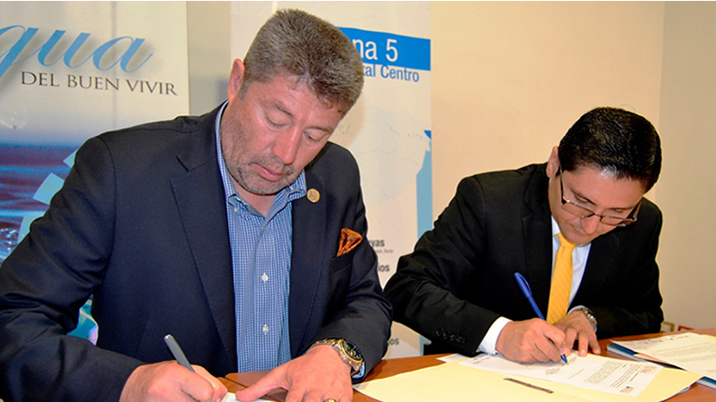 Zona 5 (19-02-2018).- Los alcaldes de El Triunfo, Andrés Macías, y de Guaranda, Ramsés Torres, suscribieron el convenio para ejecutar el programa emblemático “Misión Agua y Saneamiento para Todos”. Las dos ciudades, pertenecientes a la Zona 5 de planificación, son dos de los 55 cantones priorizados para ejecutar esta misión que, en su primera fase, contará con un financiamiento de USD 275 millones y beneficiará a más de 1.6 millones de habitantes a nivel nacional. Las firmas fueron receptadas en eventos paralelos en Guayaquil y Milagro.