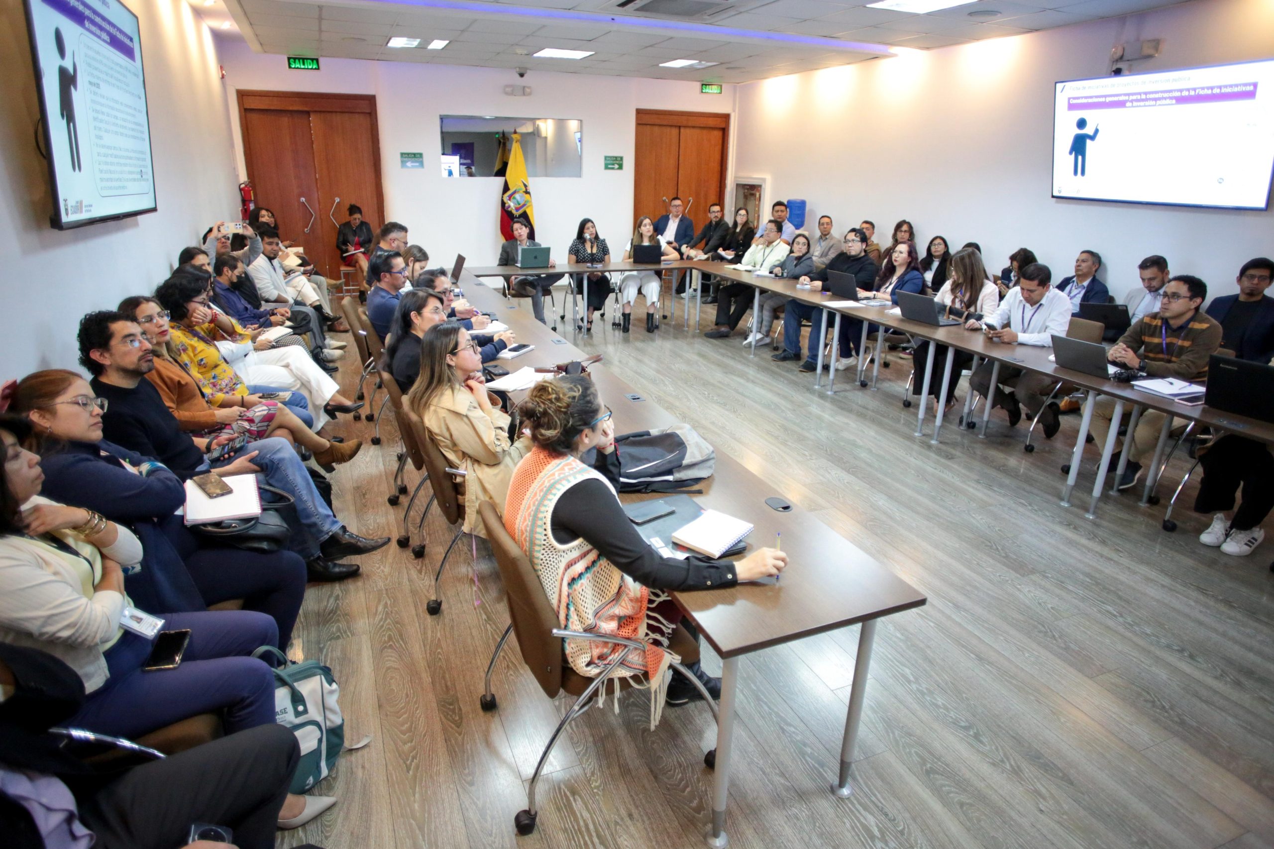 Quito (22/04/2025).– En las instalaciones de la Secretaría Nacional de Planificación se llevó a cabo la presentación de la ficha de proyectos de inversión pública, con la participación de más de 15 instituciones del Estado. Entre ellas se destacan: el Ministerio de Educación, Ministerio de Cultura y Patrimonio, Ministerio de Transporte y Obras Públicas, Ministerio de Turismo, Ministerio del Interior, Ministerio de Desarrollo Urbano y Vivienda, Ministerio de Inclusión Económica y Social, Ministerio del Deporte, Ministerio de Telecomunicaciones, el Ministerio de Salud Pública, entre otros.