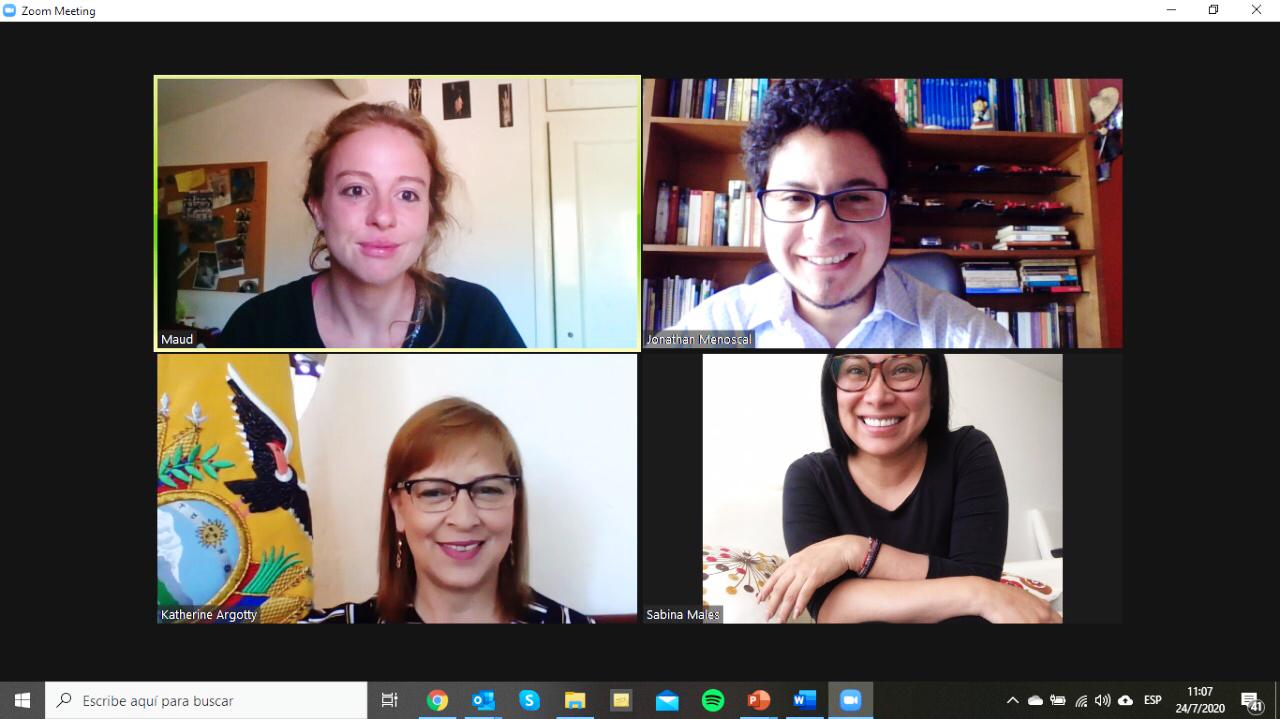 Quito, (24/07/2020).- La Secretaria Técnica de Planifica Ecuador, Sandra Argotty, ofreció una entrevista a los estudiantes del Centro Ciudades del Mañana (Tomorrow’s cities), cuya misión es proporcionar apoyo científico con el fin de reducir el riesgo de desastres por amenazas naturales de las comunidades con vulnerabilidades económicas y sociales. El Centro está conformado por la Universidad San Francisco de Quito, la Escuela Politécnica Nacional y la Facultad Latinoamericana de Ciencias Sociales (Flacso).