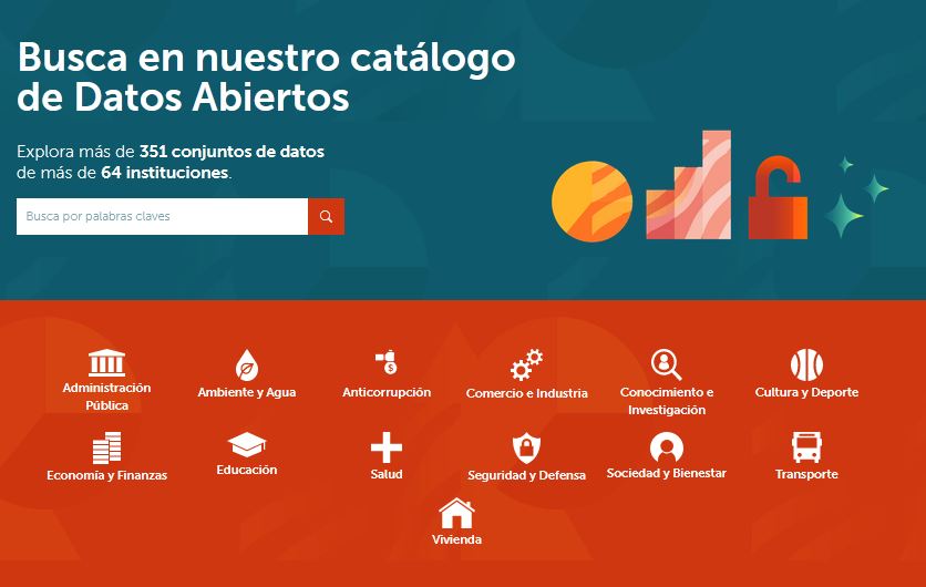 El Portal almacena, comparte, conecta y visualiza datos que generan más de 60 instituciones públicas. Los usuarios podrán encontrar información sobre Administración Pública, Ambiente y agua, Anticorrupción, Comercio e industria, Conocimiento e investigación, Cultura y deporte, Economía y finanzas, Educación, Salud, Seguridad y defensa, Sociedad y bienestar, Transporte y Vivienda.