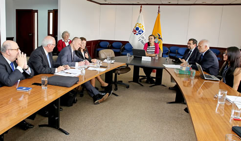 Quito (21-03-2016).- La Secretaria Nacional de Planificación y Desarrollo, Sandra Naranjo, recibió este lunes la visita de los europarlamentarios Helmuth Scholz y Santiago Fisas, ponentes principal y adjunto, respectivamente, del Parlamento Europeo para la incorporación del Ecuador al Acuerdo Multipartes con la Unión Europea (UE). Con ellos compartió el análisis de la gestión de los nueve años de Gobierno y la implementación de políticas y acciones que configuran una visión de Estado y de largo plazo.