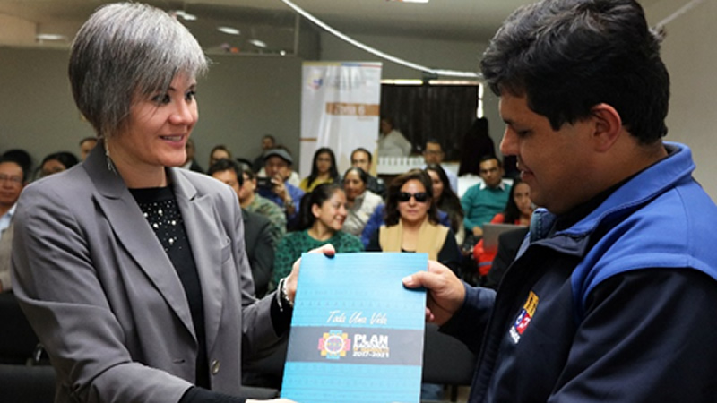 El coordinador Territorial del Conadis en el Azuay, Daniel Villavicencio, recibió el Plan Nacional de Desarrollo 2017-2021.
