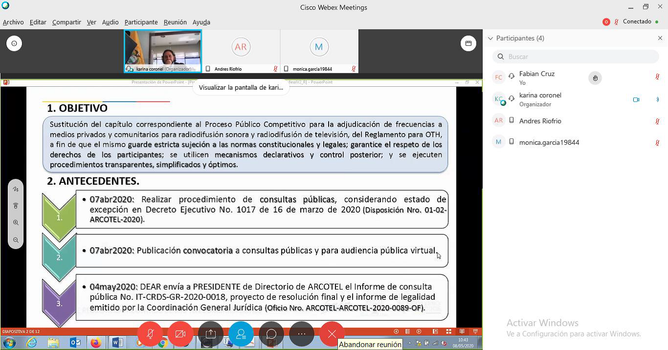 En el Directorio de la Agencia de Regulación y Control de las Telecomunicaciones (Arcotel), del cual la STPE es miembro, se aprobó la modificación a la reforma y codificación al Reglamento para otorgar títulos habilitantes (OTH) para servicios del Régimen General de Telecomunicaciones y Frecuencias del Espectro Radioeléctrico, en donde se propuso la sustitución del capítulo correspondiente al Proceso Público Competitivo para la adjudicación de frecuencias a medios privados y comunitarios para radiodifusión sonora y radiodifusión de televisión, del Reglamento para OTH. Esta propuesta está sujeta al cumplimiento de las normas constitucionales y legales; garantiza el respeto de los derechos de los participantes; se utilizan mecanismos declarativos y control posterior; y se ejecutan procedimientos transparentes, simplificados y óptimos.