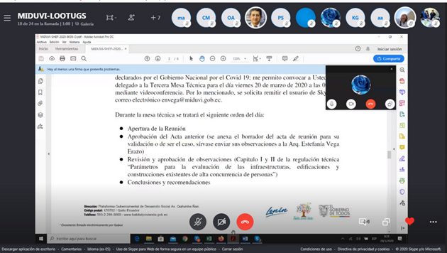 Con la premisa de coordinar acciones, autoridades de Planifica Ecuador participaron hoy -a través de videoconferencia- en la Tercera Mesa Técnica de revisión de las próximas resoluciones a expedir por el Consejo Técnico de Uso y Gestión del Suelo, convocada por la Subsecretaría de Hábitat y Espacio Público, del Ministerio de Desarrollo Urbano y Vivienda (Miduvi), la cual se enmarca en las disposiciones de la Ley Orgánica de Ordenamiento Territorial Uso y Gestión del Suelo (Lootugs).