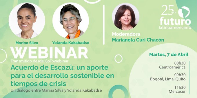 Quito, (08/04/2020).- Funcionarios de la Secretaría Técnica Planifica Ecuador participaron, este 7 de abril de 2020, en el conversatorio virtual «Acuerdo de Escazú: un aporte para el desarrollo sostenible en tiempos de crisis», organizado por la Fundación Futuro Latinoamericano, que contó con la participación de Yolanda Kakabadse (exministra de Ambiente de Ecuador) y Marina Silva (líder ambientalista y excandidata presidencial de Brasil).