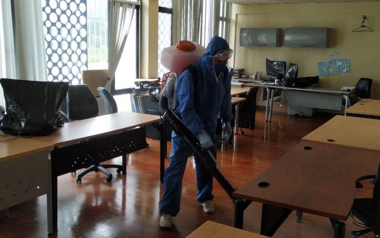 Quito, (31/03/2020).- Como una medida preventiva y urgente frente a la emergencia sanitaria Covid-19, un equipo de expertos realizó la fumigación de las instalaciones de la Secretaría Técnica Planifica Ecuador matriz, este martes 31 de marzo de 2020.