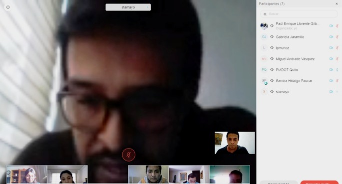 Quito, (16/04/2020).- En el marco del proceso de actualización/formulación de los Planes de Desarrollo y Ordenamiento Territorial (PDOT), equipos técnicos de Planifica Ecuador y el gobierno autónomo descentralizado (GAD) del Distrito Metropolitano Quito se reunieron para analizar los avances en la elaboración del PDOT de la ciudad, así como la respuesta local frente a la emergencia sanitaria Covid-19.