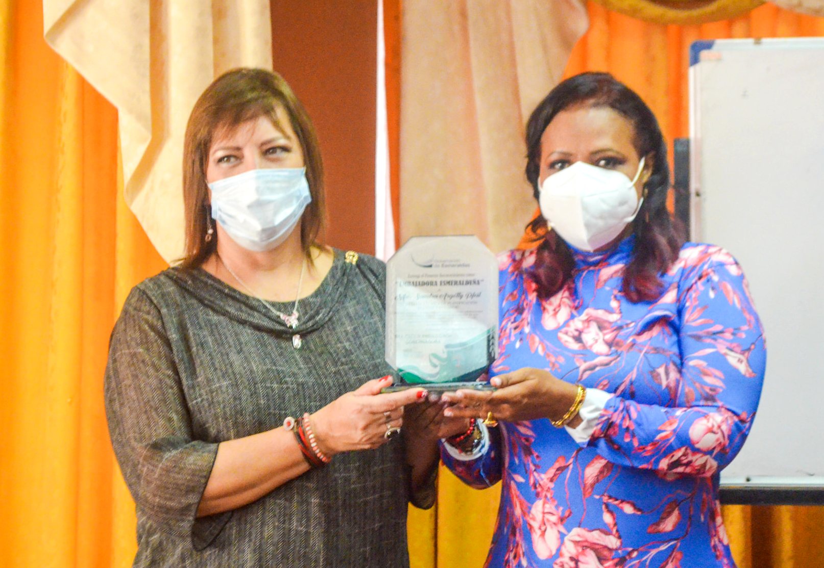 Esmeraldas, (06/11/2020).- Este viernes 06 de noviembre de 2020, la secretaria técnica de Planifica Ecuador, Sandra Argotty, recibió un reconocimiento del pueblo esmeraldeño por su gestión y compromiso con el desarrollo de la Provincia Verde. La entrega de la placa estuvo a cargo de la gobernadora de Esmeraldas, Cecilia Angulo.