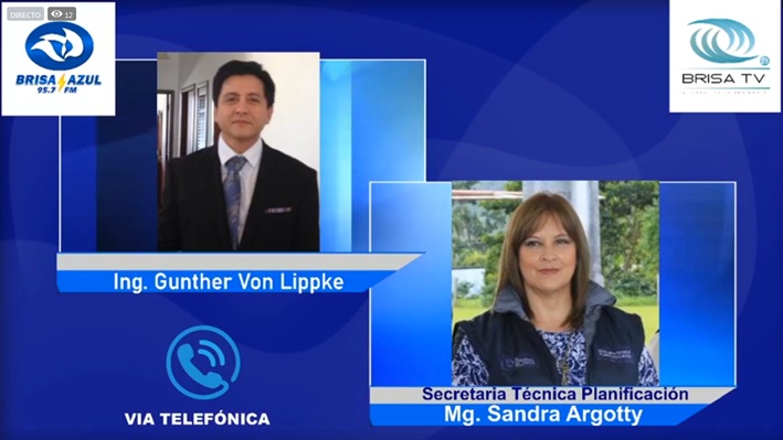 Quito, (27/05/2020).- El rol de la Secretaría Técnica Planifica Ecuador, la reestructuración el Estado y el trabajo coordinado con los gobiernos autónomos descentralizados (GAD) fueron los temas que se analizaron durante la entrevista de Sandra Katherine Argotty en Brisa TV, de la provincia de Santa Elena.