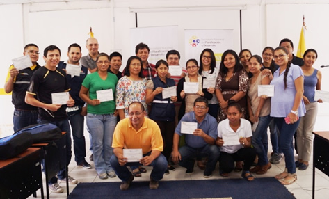 En el evento organizado por la Secretaría Nacional de Planificación y Desarrollo (Senplades) participaron técnicos de los Ministerios de Salud; Educación; Agricultura, Ganadería, Acuacultura y Pesca; Ambiente; Inclusión Económica y Social; Turismo; Secretaría del Agua y Policía Nacional. Al término del taller los participantes recibieron un certificado de asistencia equivalente a 20 horas.