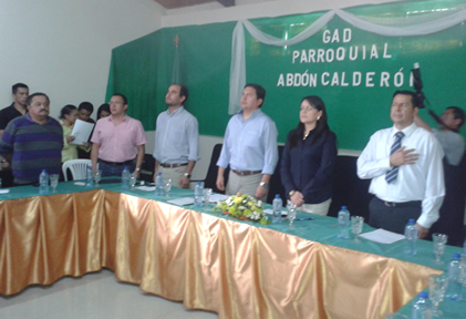 Esta entrega se efectuó con la firma de un Convenio entre la Senplades y el GAD Parroquial de Abdón Calderón, teniendo como testigo de honor al doctor Leonardo Berrezueta, Gobernador de la provincia del Azuay.
