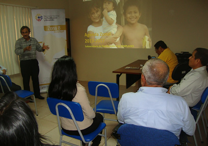 Iván Campuzano, director (e) de Planificación de la Zona 8, explicó la función e importancia de la Agenda Zonal como herramienta de territorialización de las políticas públicas nacionales. También es útil como un elemento orientador de la planificación y el ordenamiento territorial que deben realizar los GAD en cada uno de sus territorios.