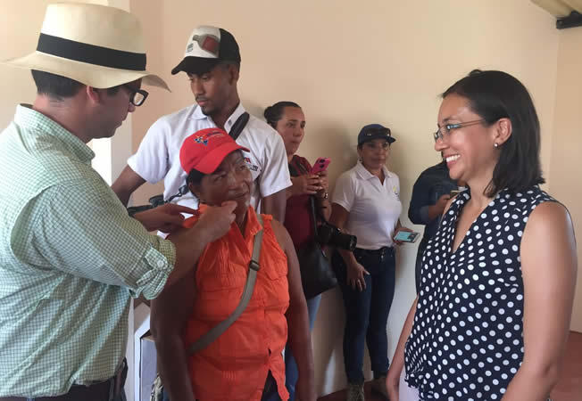Jama, (15-02-2017).- Durante la jornada desarrollada en Manabí, la Vicepresidenta de la República (e), Sandra Naranjo, entregó 30 de las 175 casas del reasentamiento “El Matal”, que beneficia a las familias afectadas por el terremoto del pasado abril de 2016.